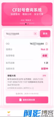 介绍:只需QQ一键查询对方账号状态、信用分、游戏近90天内封禁处罚情况,除了CF其他腾讯游戏封禁也能查出。 软件仅可用于学习交流使用 严禁使用软件从事任何违法犯罪行为