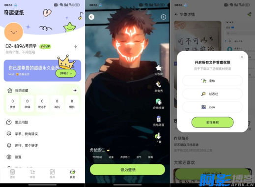 【软件名称】:奇趣壁纸 【软件版本】:2.1.2 【软件大小】:91.9mb 【适用平台】:安卓 【软件介绍】:奇趣壁纸是一款免费的手机美化App,提供了壁纸、来电秀、QQ/微信皮肤、充电动画、字体、状态栏主题、组...