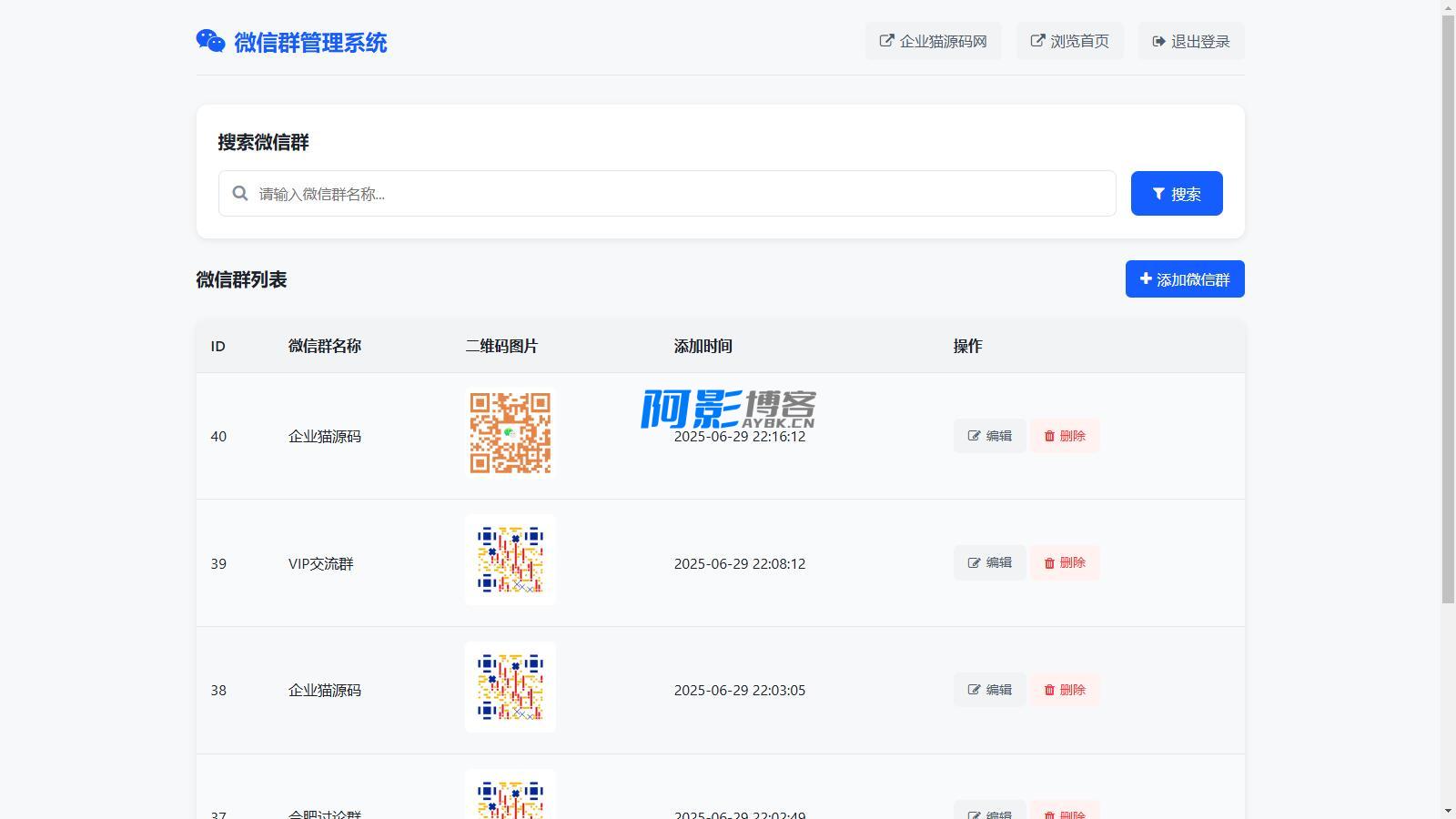 2.管理员后台可以操作编辑所有用户上传的微信群和二维码。