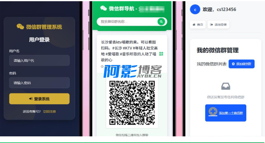 1.增加了用户注册,登陆上传各自微信群和二维码。