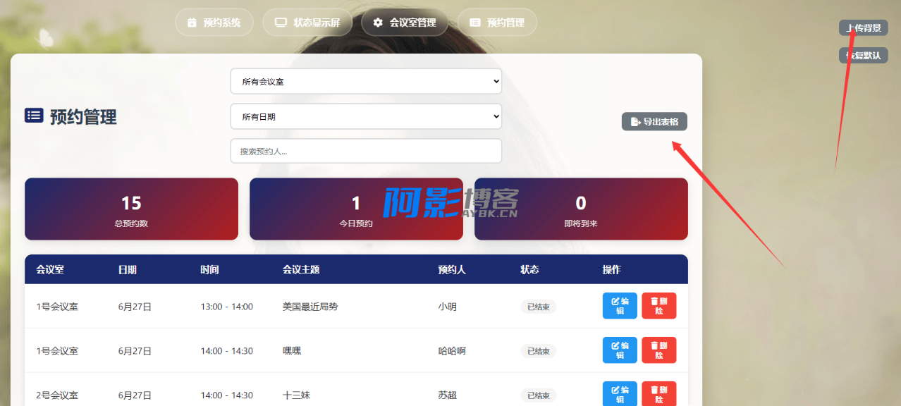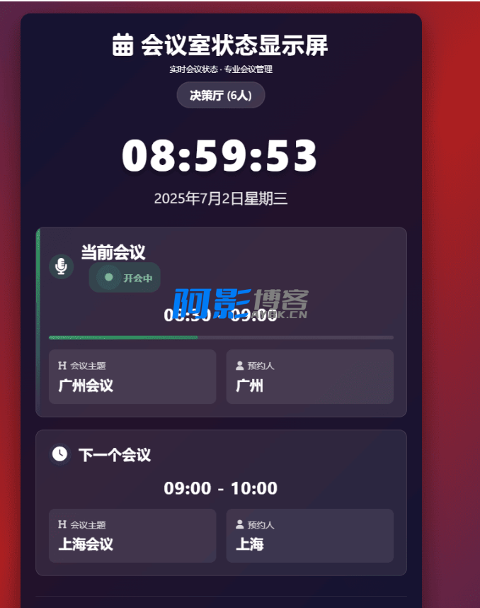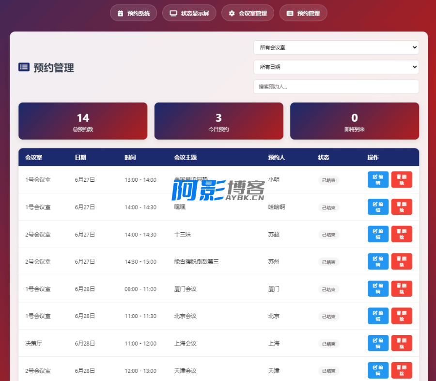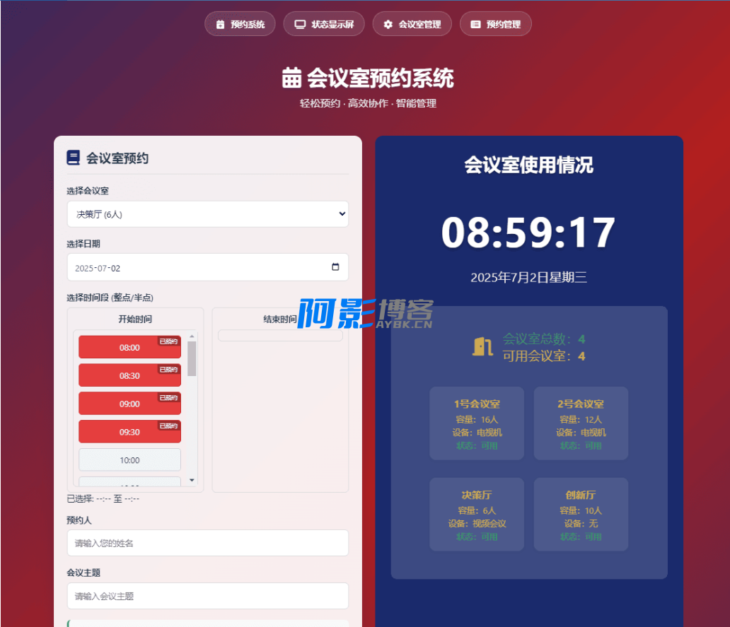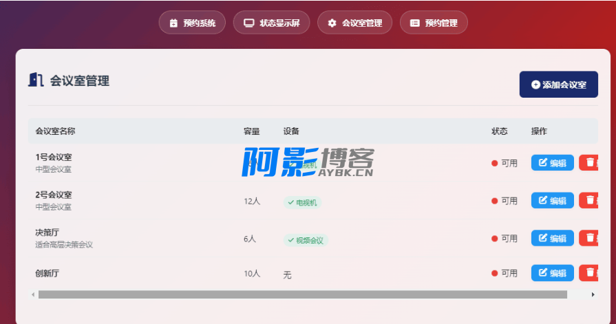 包含预约界面,状态显示屏,会议室管理,预约管理。