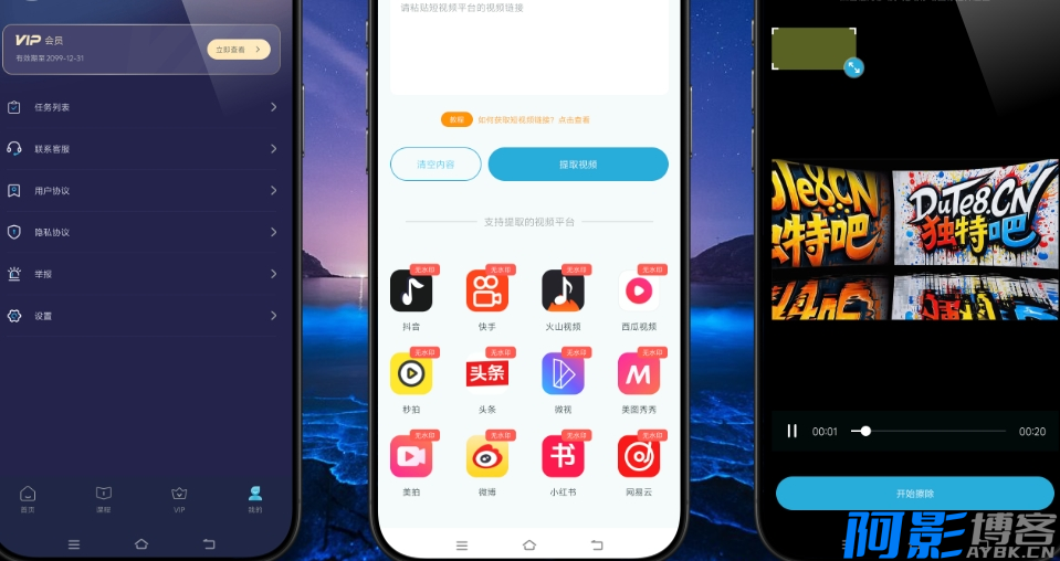 支持解析并去除以下平台视频水印: