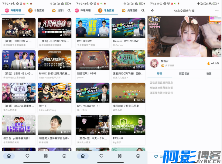 这是一个聚合了B站、斗鱼、虎牙的直播APP。