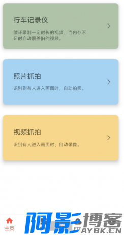 这是一款专业的视频监控软件,主要有行车记录仪和抓拍两种工作模式: