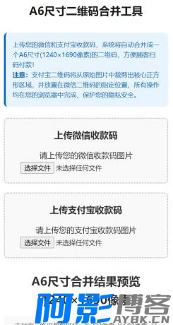 上传你的微信收款码和支付宝收款码,系统会自动合并成A6尺寸二维码,方便顾客扫码付款。