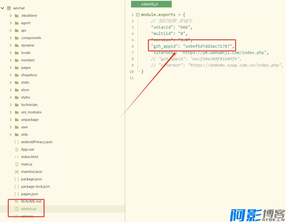 1、使用hbuilderx工具打开前端源码wechat(路径前端\anmo-vue\wechat)