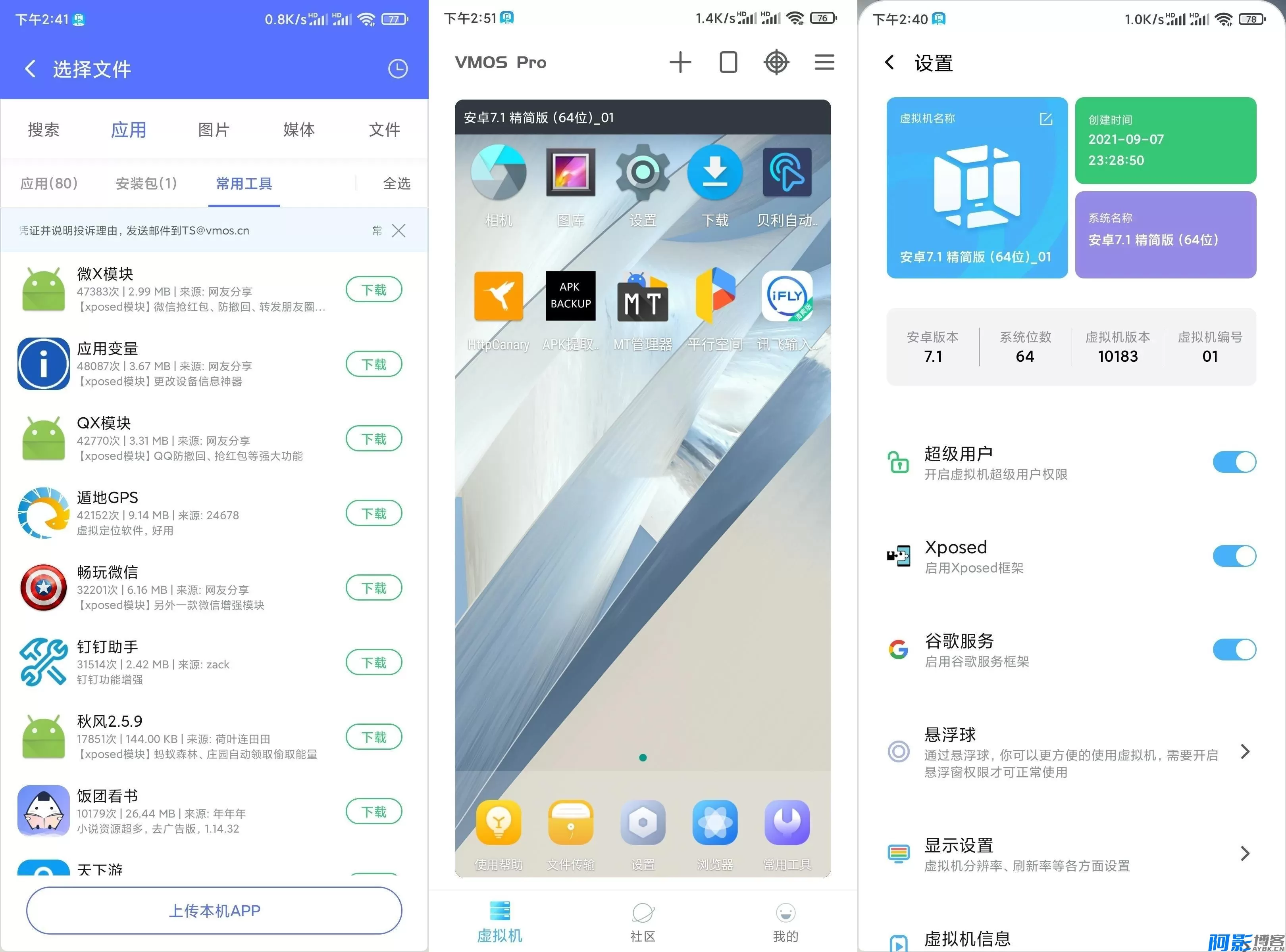 VMOS(虚拟大师)-全球首款安卓虚拟手机系统,不受真机系统限制,能满足开发和测试的需求,不用担心病毒和系统崩溃的风险。VMOS(虚拟大师)自带root权限,支持XP框架和谷歌套件,满足极客手机爱好者的各种需求。VMOS(虚拟大师)的悬浮窗功能,支持真机和虚拟机双开同屏操作。VMOS(虚拟大师)的悬浮球功能和手势,让操作和切换变得更简单便捷。