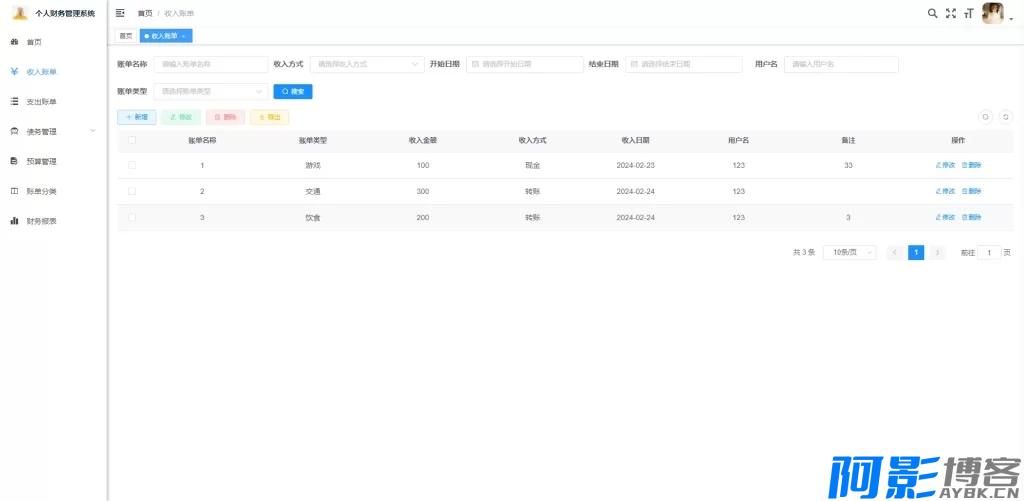 在个人财务管理日益受到重视的今天,一款结构清晰、功能实用的财务记录系统不仅能帮助用户掌握收支状况,还能为计算机专业学生提供优秀的毕业设计范例。为此阿影博客网特别整理并免费分享这款基于主流技术栈开发的 SpringBoot个人财务系统 源码。该系统采用B/S架构,使用Java语言与SpringBoot框架构建,搭配MySQL数据库,代码无加密、逻辑清晰、注释完整,非常适合用于毕业设计参考、课程实训或二次开发学习。