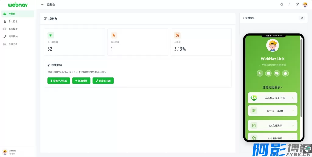 WebNav Link是一款专注“个人主页/导航页”场景的轻量级个人导航系统,让你轻松打自己的专属导航页面。开箱即用,强调配置即所见,适合想快速上线个人主页、作品集或轻型聚合页的用户。