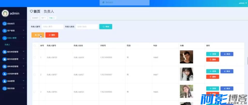 - 个人中心:修改管理员个人信息与头像