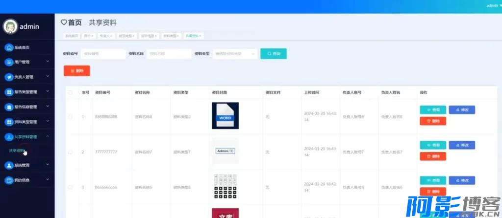 - 共享资料管理:审核用户或负责人上传的资料,控制是否公开