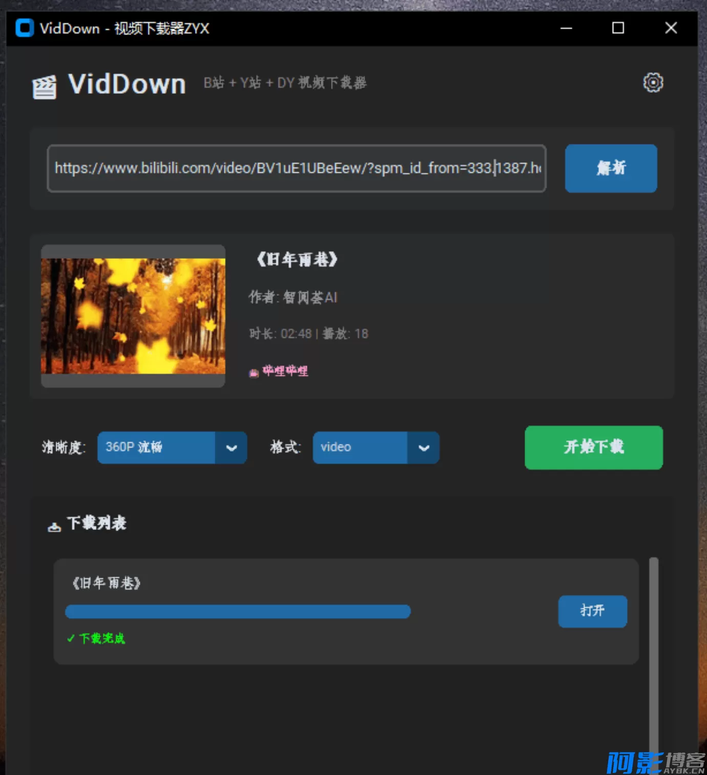 这个下载B站视频的小工具用起来还挺方便的,油管和DY的也可以下载。