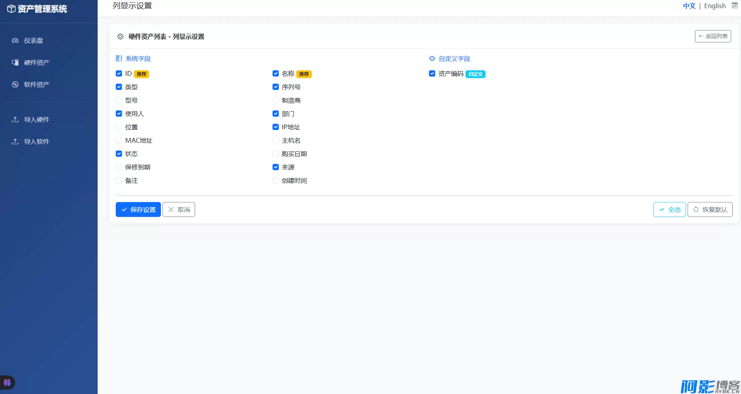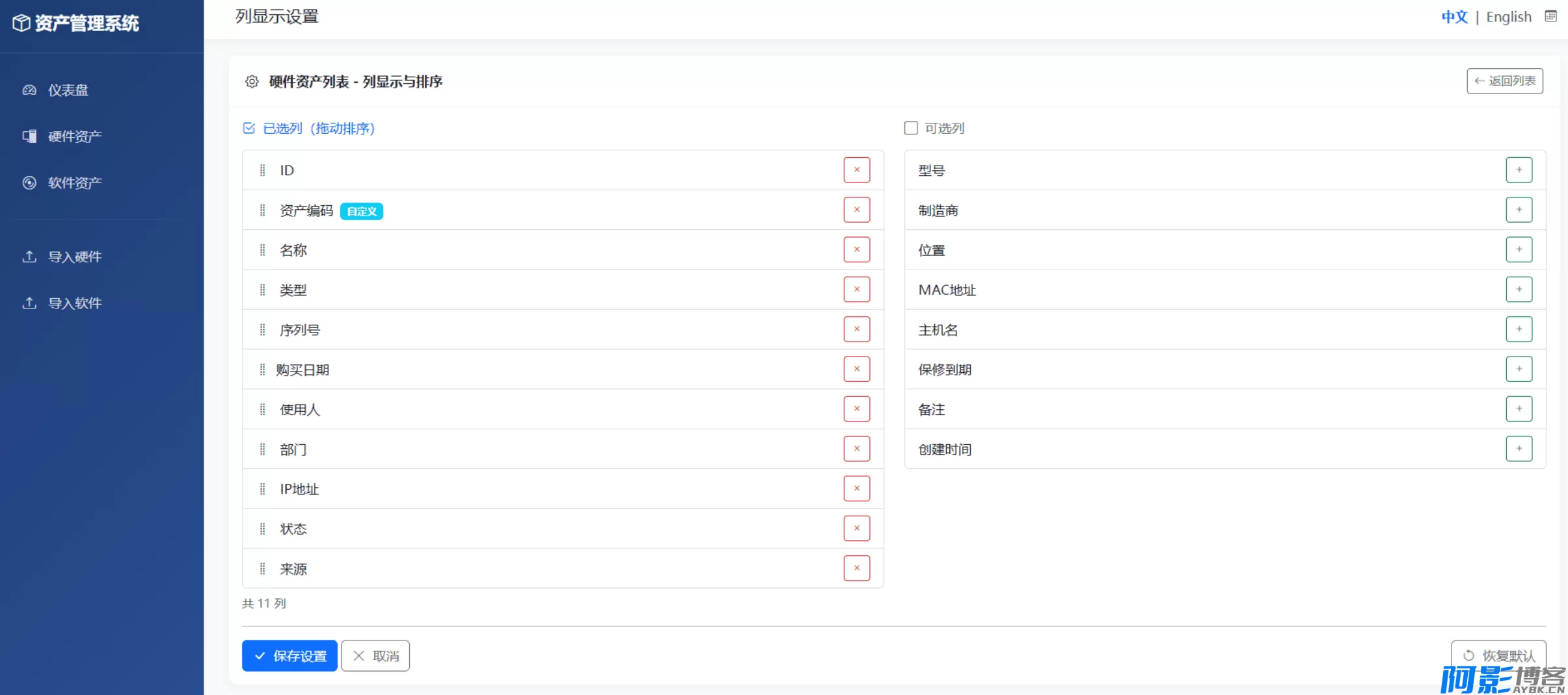 - 修复硬件资产列表"列显示与排序"页面中资产名称字段缺失问题