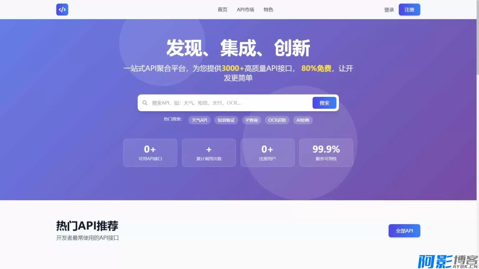 基于 PHP+Mysql 进行开发的,拥有多接口管理功能,支持不同的计费方式包括包月、按次、会员专享。用户可以全自动注册使用,系统支持在线调试和日志记录。现有API接口只需要几行代码就可以接入本系统,实现不同的计费方式。