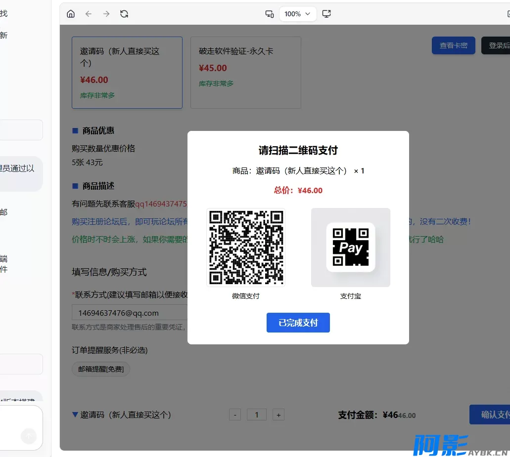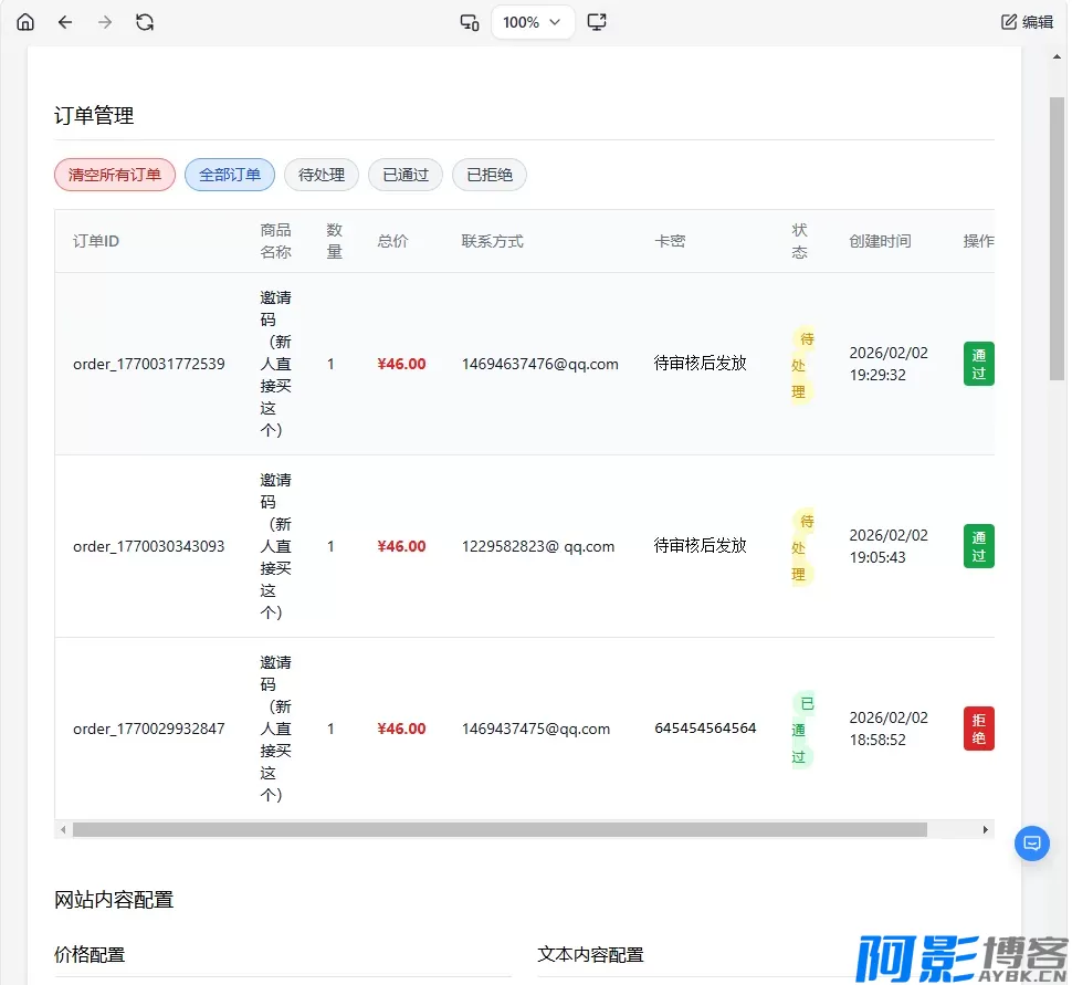 这是一个基于React+TypeScript+Tailwind CSS的邀请码购买系统,包含前台购买页面和后台管理功能,支持商品管理、订单处理、卡密发放和邮件通知等功能。