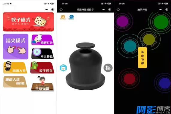 最新修复版 娱乐喝酒小程序源码 聚会娱乐类微信小程序,专为喝酒、聚会场景设计,集成了多种互动游戏和娱乐工具。 核心功能模块(共9大功能): 摇骰子 咬手鳄鱼 喝酒大哥 指尖陀螺 转盘抽奖 灯光DJ 手持弹幕...