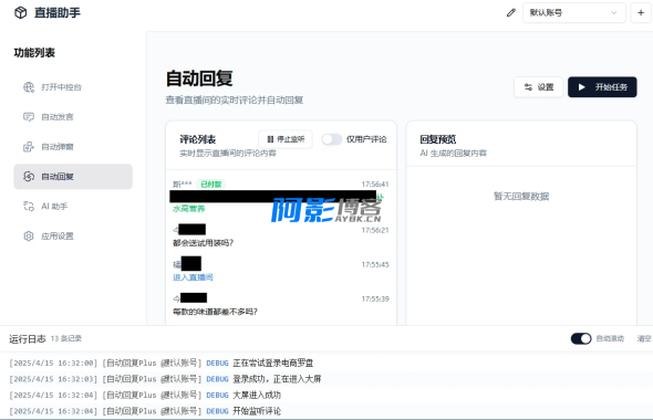 About这是我在逛github上看到的一款直播小工具,看介绍感觉挺厉害的,所以分享下,支持抖音小店/巨量百应/抖音团购/小红书/视频号/快手小店✨ 功能 🍟 多账号管理:支持多组账号配置,针对不同直播间使用不同的配...
