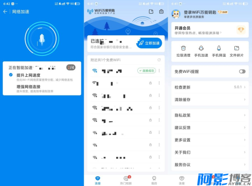 【应 用 名 称】:WiFi万能钥匙【应 用 版 本】:5.0.1【应 用 大 小】:34.62M【应 用 介 绍】:WiFi万能钥匙-通过工信部中国信通院泰尔实验室的移动应用软件安全评估检验,省心连WiFi,省流又安全!