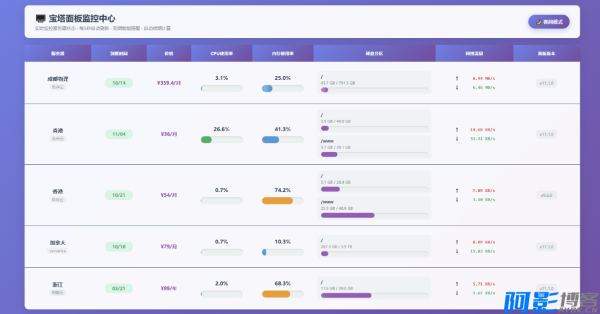 AI编写的一个服务器监控源码接口使用的宝塔面板api,被监控机器需要安装宝塔面板将压缩包上传至站点解压,修改“servers.php”内链接信息即可