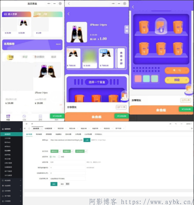 前端魔力赏盲盒小程序 UI原生盲盒微信小程序源码下载,前端是小程序原生源码。 很不错的一款盲盒小程序。 完全没有毛病,非常适合研究学习。 搭建教程:后端放入WQ框架 模块文件内,安装即可