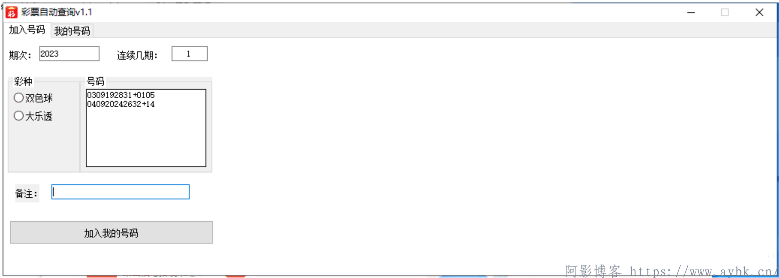 填写【期次】回车,【连续几期】回车,输入号码,选择彩种【加入号码】