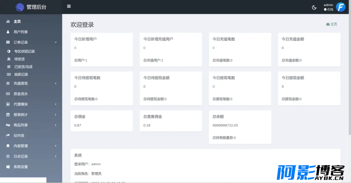 可以看广告获得收益,代理分销模式都很完整,前端是vue编译后