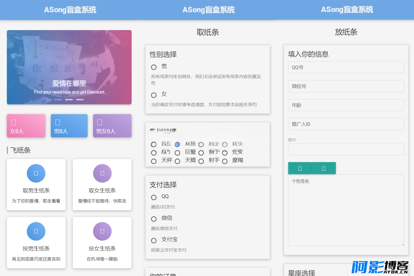 ASong盲盒源码全面代码开源直装版。盲盒系统曾经非常热门,使用时需要购买授权,但现在我分享一个完全开源的盲盒源码。