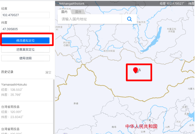 在地图上选择你期望的定位,然后点击修改虚拟定位即可