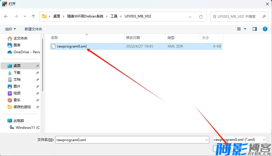 选中/UFI003_MB_V02/rawprogram0.xml文件