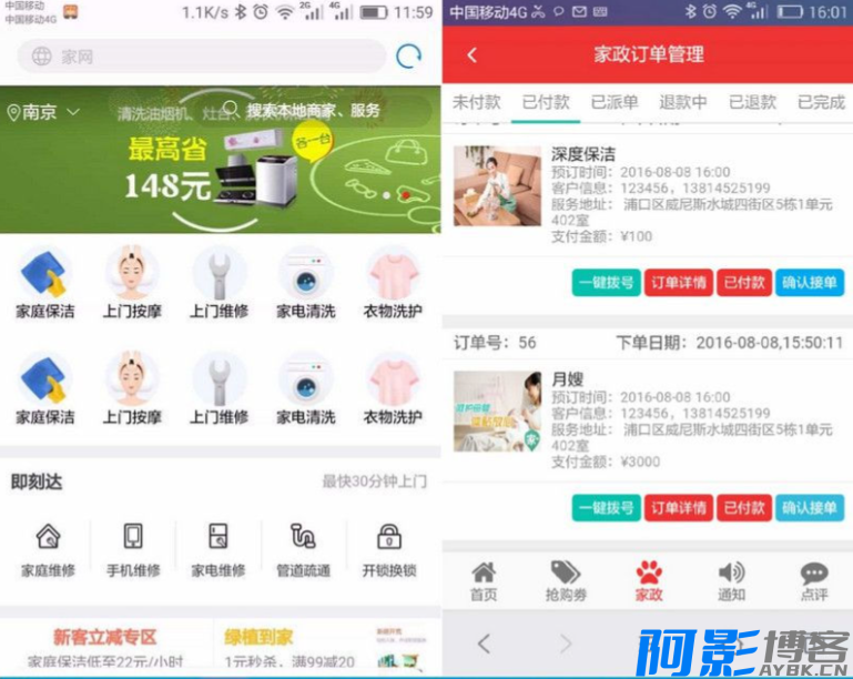 仿站阿姨帮|58到家是一款PHP+MYSQL制作的在线上门O2O系统,BAOCMS基础上二次开发模仿的东西是最新版内核, 修复了所有的功能BUG,本源码可以微信支付定金,可以申请退款,商户端可以操作退款,操作接单等…功能高级,版面完美,含员工端抢单、商户端管理、外卖、酒店、农家乐、跑腿等等功能,支持分站。