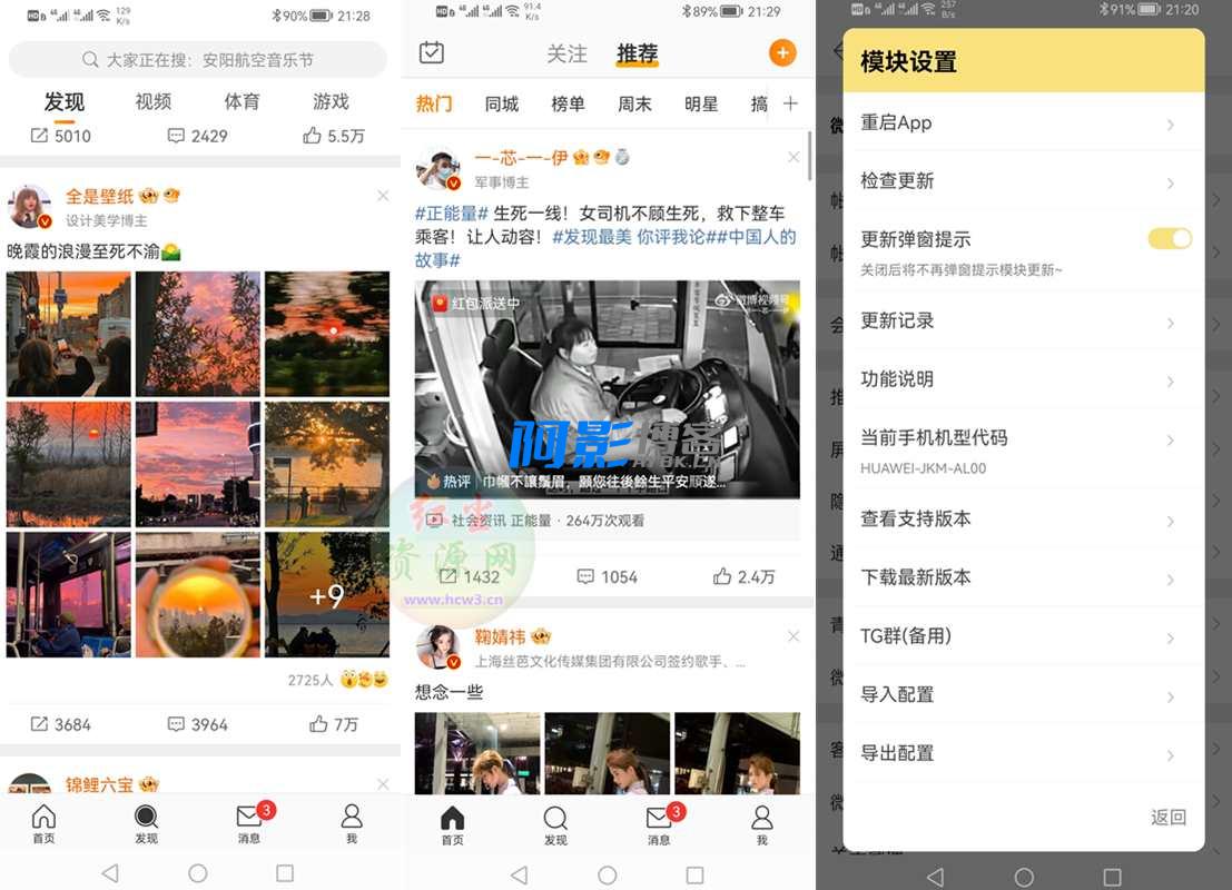 1、此版本是直装版,需要卸载原版的微博APP,直接安装的客户端自带咸猪手模块