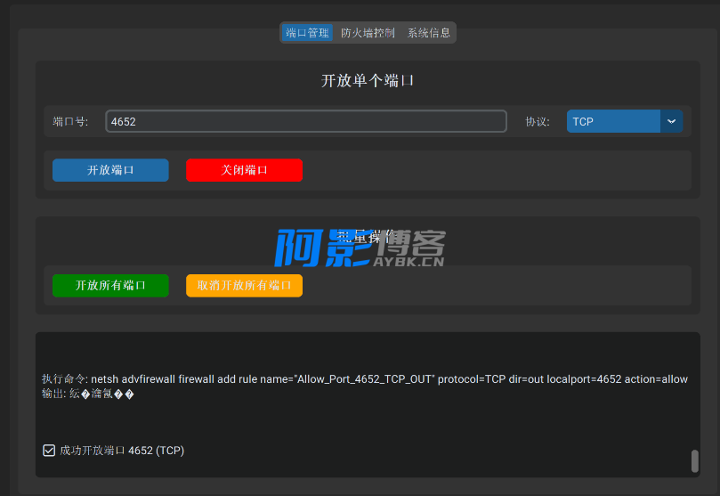 | # Windows 端口管理工具 一个功能强大的Windows端口管理和防火墙控制工具,采用现代化的GUI界面设计。 ## 🖼️ 程序截图 *现代化的暗色主题界面,支持端口管理、防火墙控制和系统信息查看* ## 功能特性 ✨ **主要功能** - 🔌 **端口管理**: 开放/关闭单个或批量端口 - 🛡️ **防火墙控制**: 启用/禁用Windows防火墙 - 📊 **系统信息**: 实时查看网络配置信息 - 🎯 **协议支持**: TCP、UDP或两者同时 - 🚀 **批量操作**: 一键开放/关闭所有端口 - 🔐 **权限管理**: 自动检测和请求管理员权限 ✨ **界面特性** - 🌙 **现代暗色主题**: 类似Web界面的现代化设计 - 📱 **响应式布局**: 自适应窗口大小 - 🎨 **美观易用**: CustomTkinter现代化组件 - 📝 **实时日志**: 详细的操作反馈和状态显示 - 🔗 **集成广告**: 支持云服务器推荐和技术交流群 ## 🚀 快速开始 ### 方式一:直接运行可执行文件(推荐) 1. 下载 `dist/Windows端口管理工具.exe` (26.8MB) 2. 右键选择"以管理员身份运行" 3. 开始使用! |