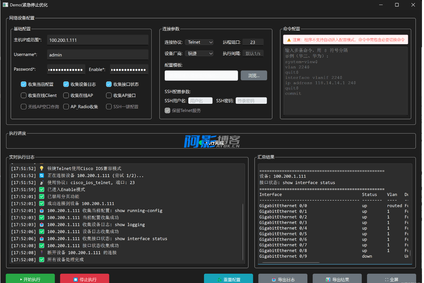 - 针对不同厂商设备优化了连接参数和命令执行逻辑
