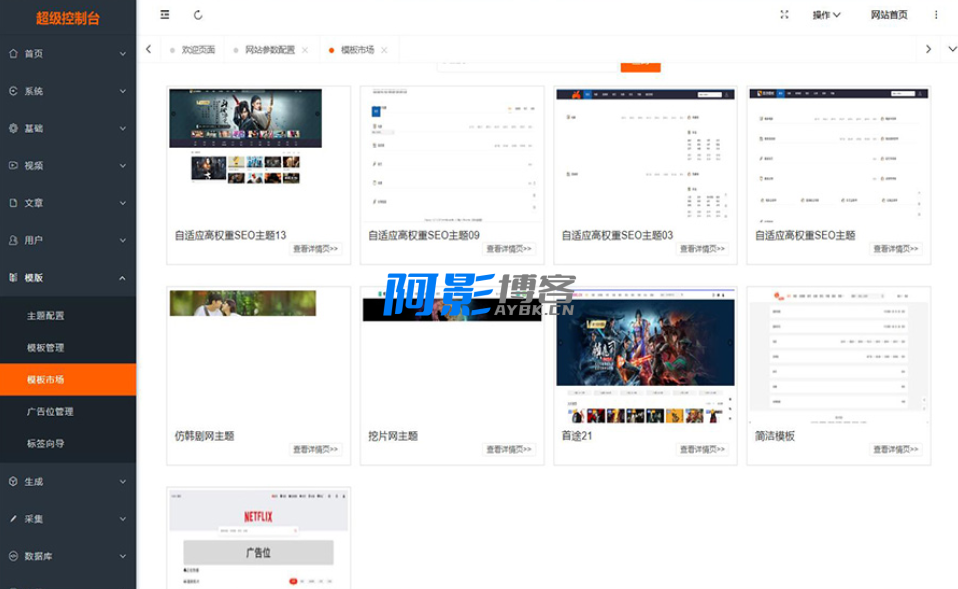 后台模板市场里有9套模板,不过模板市场有时候打开速度较慢,卡的时候需要多次刷新