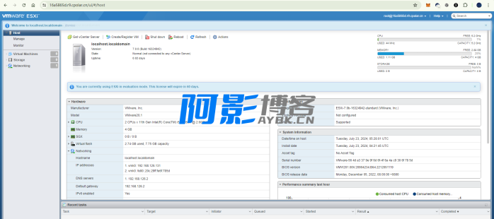 可以看到登录进去了,本地下载ESXi 和安装就成功了,本地测试无误后,下面我们进行安装cpolar内网穿透软件,实现远程访问