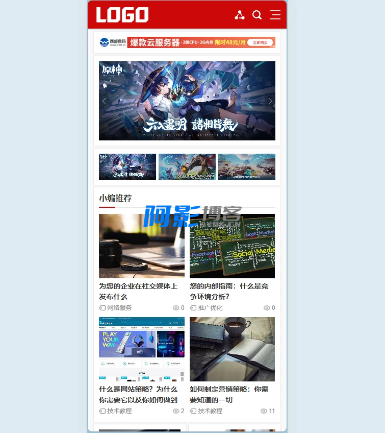 PbootCMS内核开发的网站模板,该模板适用于seo博客网站、新闻资讯网站等企业,当然其他行业也可以做,只需要把文字图片换成其他行业的即可;