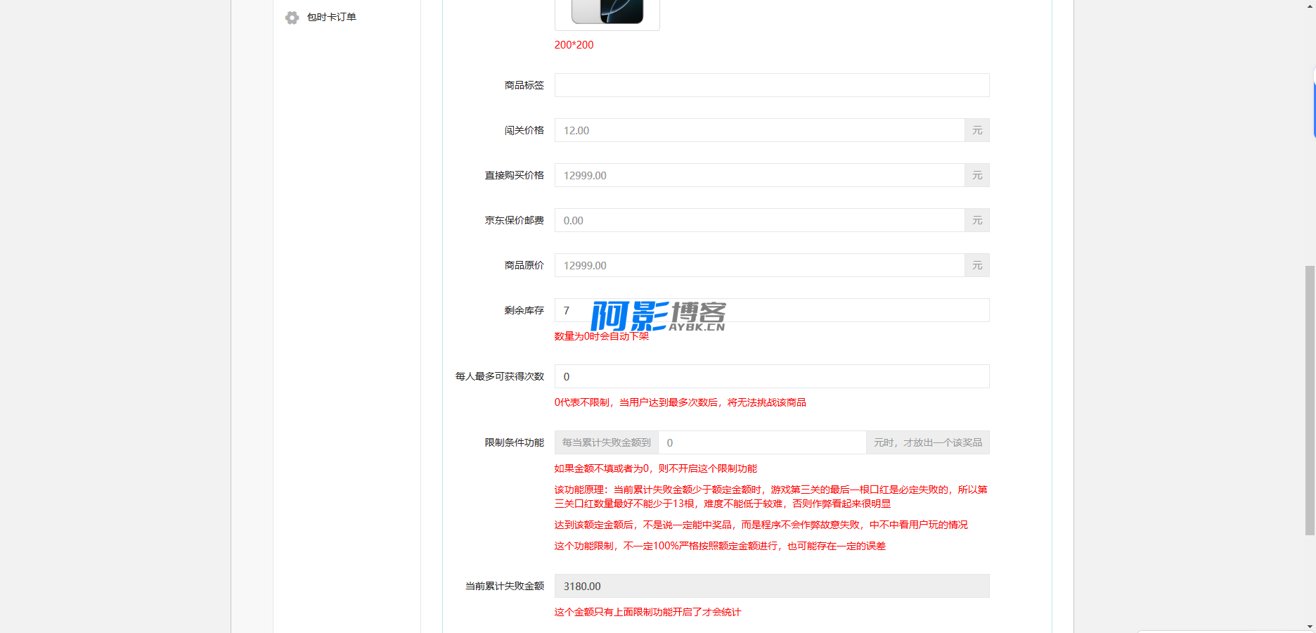 商品可设置无库存自动下架,支持设置当用户达到最多次数后,将无法挑战该商品