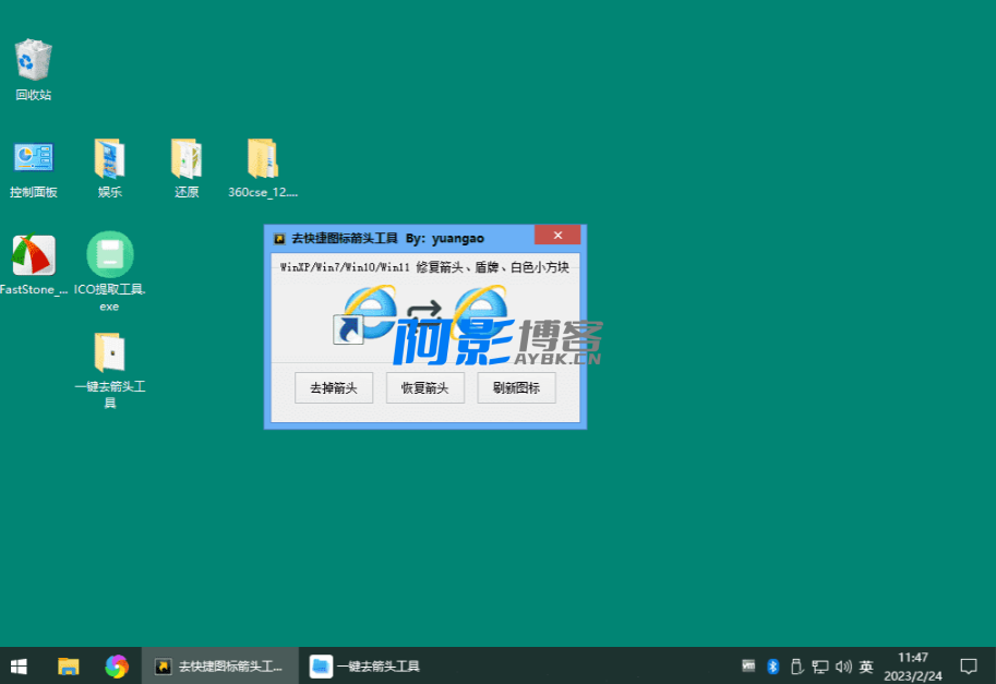 快捷方式小箭头去除工具体积小巧,简单易用,应用重名后,造成图标不变,