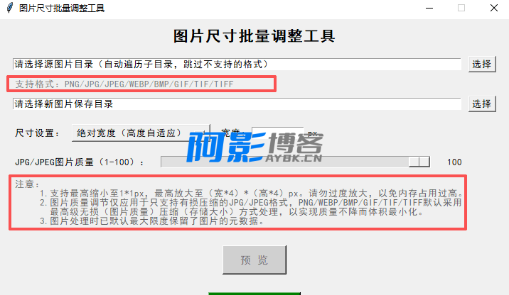 站里也看到了很多图片尺寸大小调整工具,但是总是有各种问题,比如不支持某些格式,不支持批量,不支持放大,不支持无损,压缩不到位,不支持预览等。