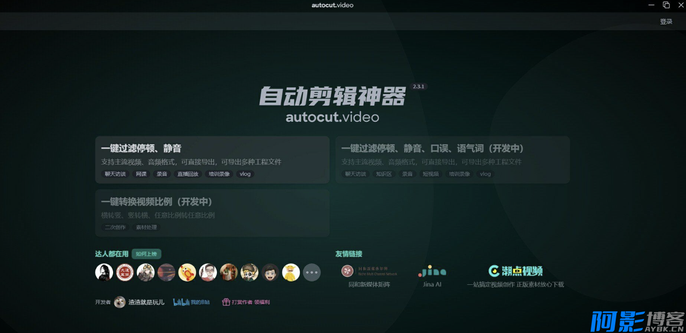 Autocutvideo是国内大神开发免费软件ai自动剪辑软件,可以一键将视频或音频里的停顿和静音片段删除,非常方便需要剪辑大量谈话内容或者Vlog视频的朋友,我要是早几年知道这么好用的软件就好了浪费了很多时间,同时支持Mac和Windows。