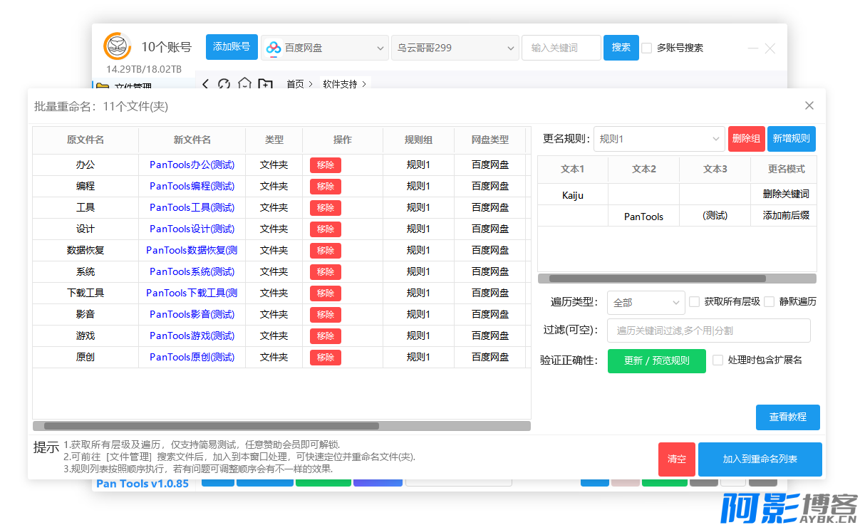 4.批量重命名改变,支持多组、多规则.