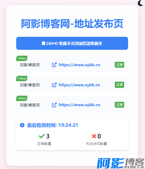 | 全新UI网址发布页源码,带黑白模式,自动检测网址是否能够正常访问,自适应手机/电脑,无后台,上传网站根目录就能用,首页内容在index里面修改 |