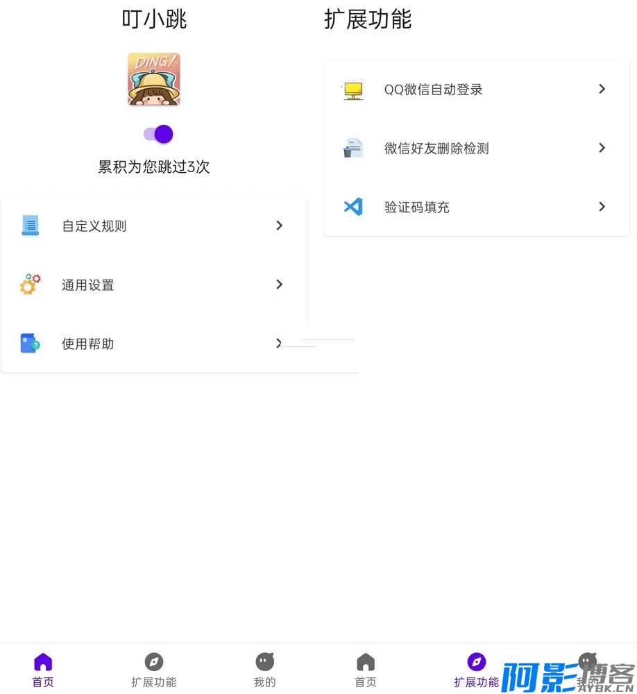 叮小跳app是一个强大的可跳过开屏广告的APP.叮小跳安卓版,界面精简操作易懂.支持微信QQ自动登陆,微信好友检测,自动读验证码.安装叮小跳可节约APP启动时间以及防止误触进入广告页面,大大提高APP开启效率