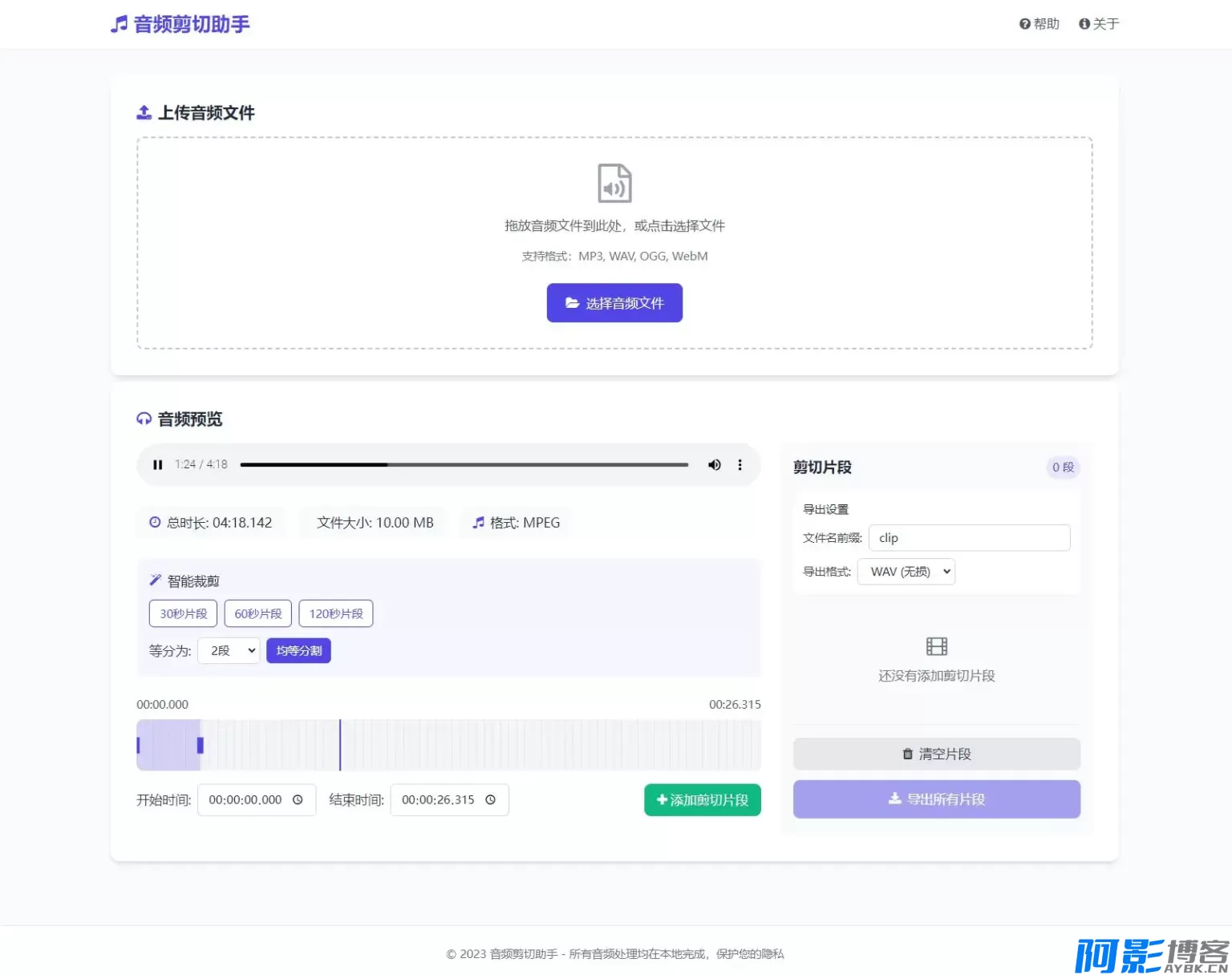 音频在线剪切助手网页版源码 所有音频处理均在本地完成