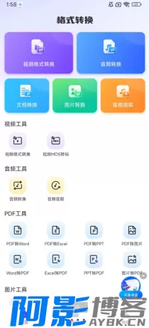 【软件介绍】万能格式转换器,一键操作,支持视频、音频、文 档、图片等多种格式转换,包括视频转音频、压缩、 提取,图片转PDF,视频MD5转码等。特色包括音 频、视频、图片格式转换,及PDF、Word、Excel、 PPT互转,功能全面,满足日常需求。