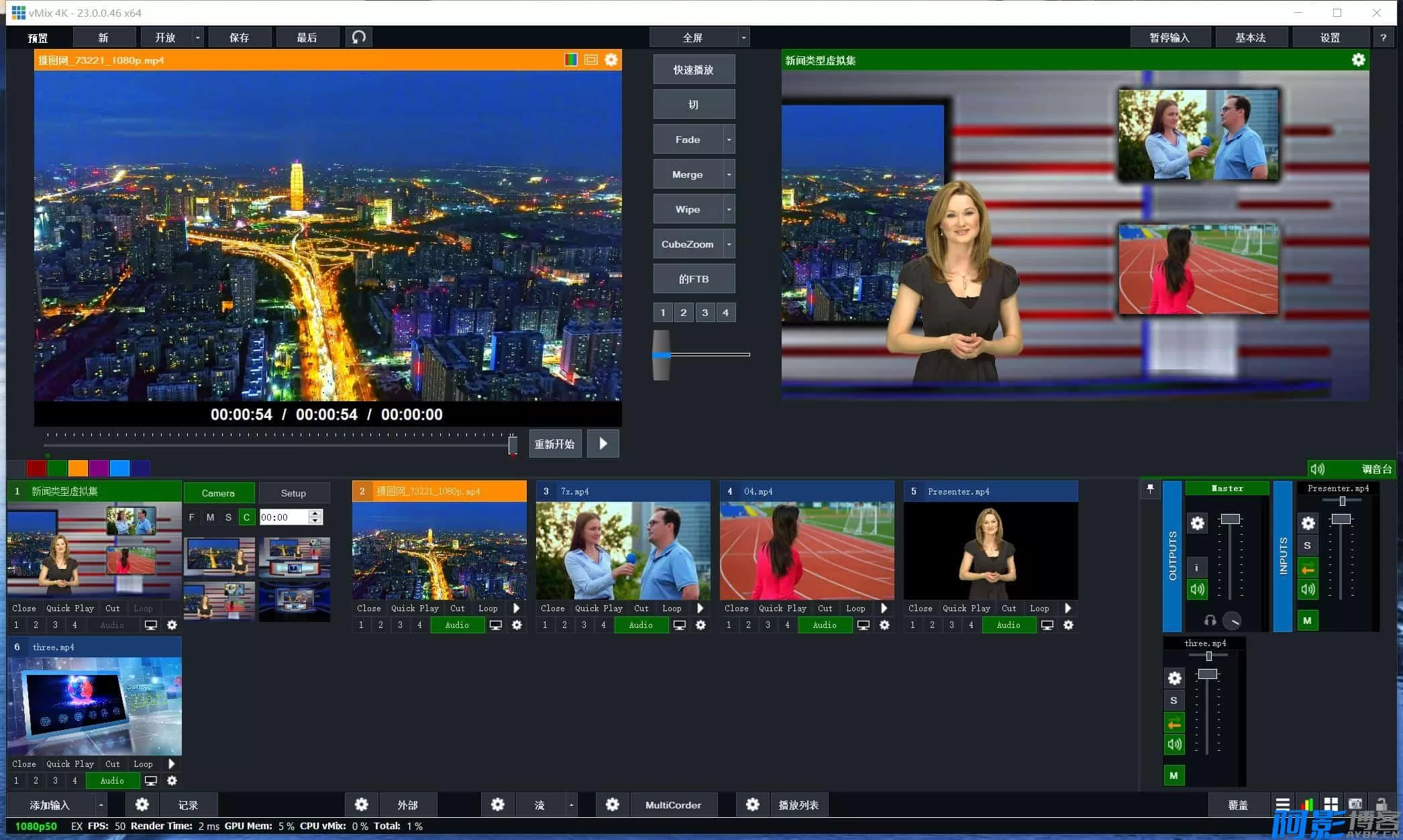 | vMix功能介绍 1、支持多路SD1、HDMI信号输入,最高分辨率支持4K 2、支持多机位切换,支持外接切换面板,可设置快捷键切换,支持13种切换过渡效果 3、内置虚拟抠像功能,内置音频调音台 4、可以切换和播放视频文件、音频文件、图片、PPT,支持画中画叠加功能 5、支持输出到大屏功能,无缝输出 6、支持局域网浏览器控制切换功能 7、支持直播推流功能,最多推3路直播流 8、支持录制功能,最多录制2路画面 9、可实时捕捉PC或者MAC电脑桌面画面 10、支持ND1、SRT功能 11、内置字幕标题模板 12、支持9:16直播推流 (温馨提示:系统要求25版本(win10/win11 23h2及以下)) |
