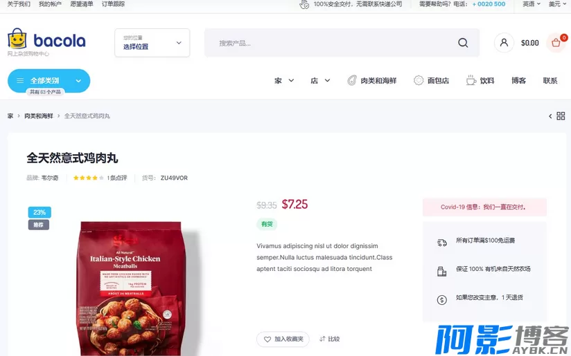 Bacola WordPress 主题功能、Elementor 页面生成器、呜、道馆、WC市场、与RTL兼容、位置过滤器就绪、弹出位置过滤器、已添加到购物车 Ajax 弹出通知、产品包装盒的数量字段、加载更多分页 Ajax、无限滚动分页 Ajax、快速浏览、AJAX 商店过滤器、AJAX 产品搜索、AJAX 添加到购物车 对于可变和分组的产品、AJAX 从购物车中删除、愿望清单、最近查看的产品、最小/最大数量选项、单个手机粘性 加入购物车、产品图片缩放、产品视频、产品移动过滤器、产品类别过滤器、产品状态、按颜色筛选产品、按品牌筛选的产品、Sticky 添加到购物车手机版、订单跟踪、通用数据保护条例、弹出式时事通讯、视频教程、WOOCS多币种、WPML系列、Polylang、支持 Loco Translate、联系表格 7、支持元框、用于快速主题缓存和速度选项的总缓存配置文件、Google Web 字体、博客就绪、.适用于所有语言的 POT – 多语言、7/24 快速支持、Oneclick demodata 安装程序和 XML、Oneclick主题更新