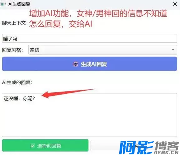 一款基于 AI 智能的微信聊天辅助工具,可一键生成个性化回复、自动处理常见问题,极大提升对话效率,助力客服、社群及日常沟通场景实现高效智能化回复。