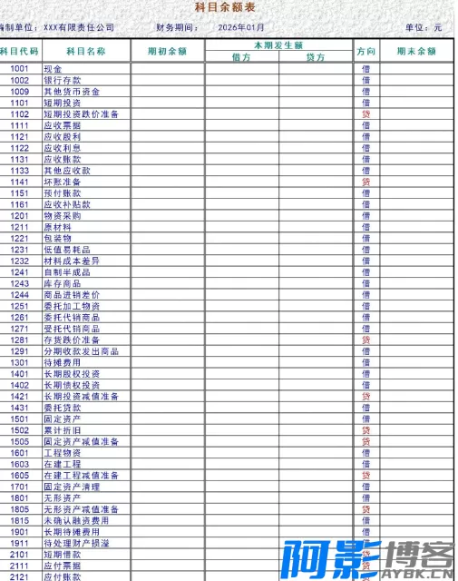 ⑥明细科目可在总账科目之后自行增减或修改,科目之间不可有空单元格。