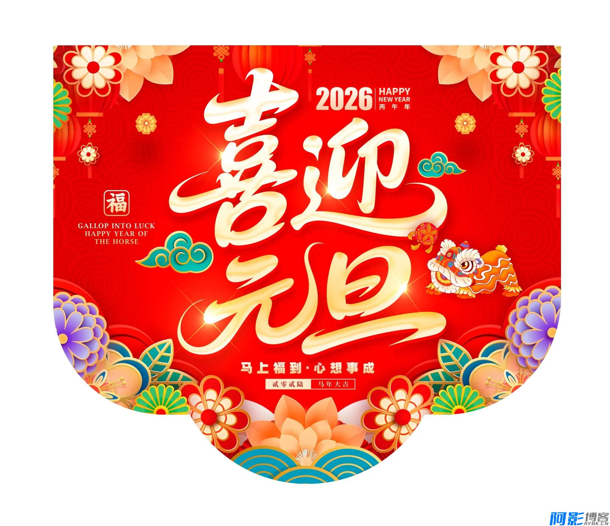 2026马年新春活动吊旗挂画PSD模版和元旦商超促销插画吊旗设计素材25款